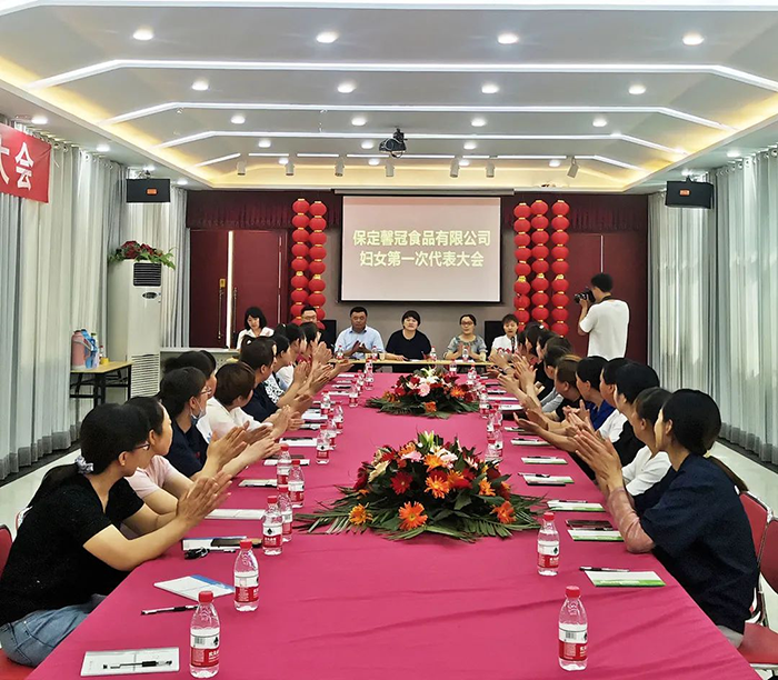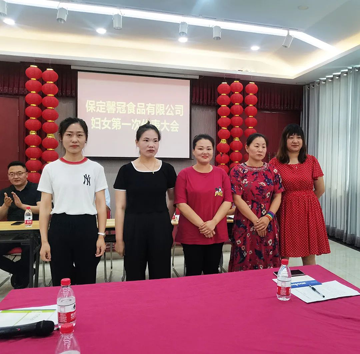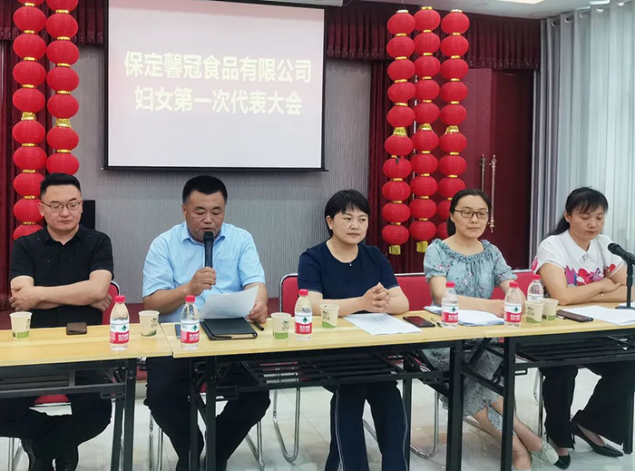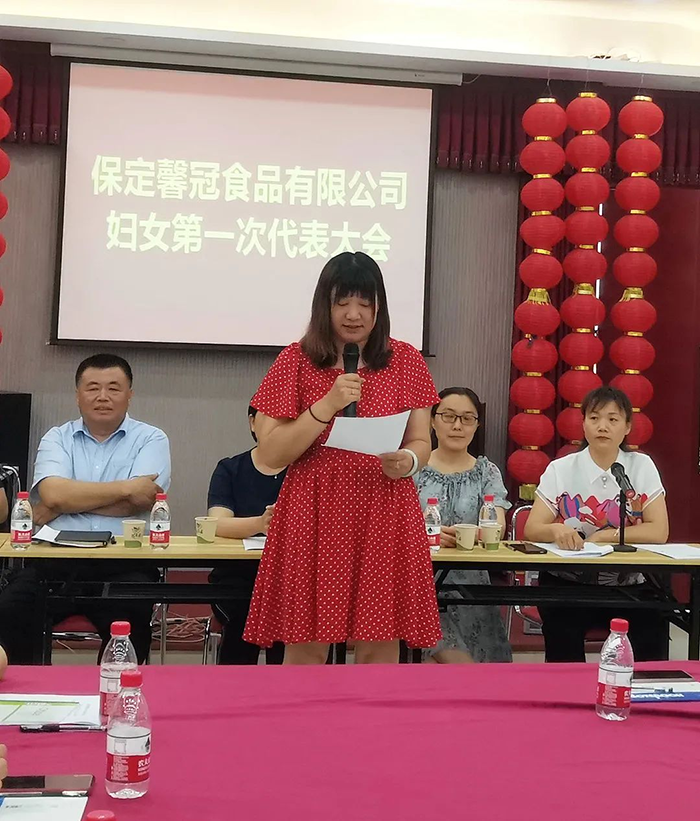 萬物蔥綠,麥浪金黃,在這個盛夏浪漫時節(jié),2021年6月8日,保定馨冠食品有限公司迎來公司第一次婦女代表大會。宣布成立馨冠食品公司“婦女聯(lián)合會”。會議選舉產(chǎn)生第一屆婦聯(lián)執(zhí)行委員3名、主席1名、副主席1名。滿城區(qū)婦聯(lián)主席要彥偉、婦聯(lián)三級主任科員安麗敏出席會議,于家莊鎮(zhèn)婦聯(lián)主席王艷茹主持會議。村支部書記盧志鵬及馨冠公司黨支部負責人出席會議。馨冠公司30名婦女代表參加會議。 滿城區(qū)婦聯(lián)主席要彥偉、馨冠公司董事長盧長永發(fā)表講話。